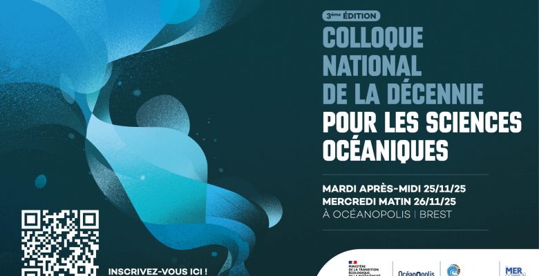 La 3ème édition du Colloque national de la Décennie des Nations Unies pour les sciences océaniques, organisée par le Ministère de la Transition écologique, de la Biodiversité, de la Forêt, de la Mer et de la Pêche et Océanopolis, se tiendra les 25 et 26 novembre 2025 à Océanopolis Brest.
