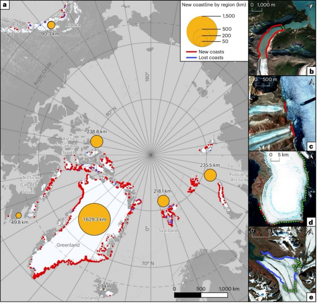 Source : Kavan, J., Szczypińska, M., Kochtitzky, W. et al. “New coasts emerging from the retreat of Northern Hemisphere marine-terminating glaciers in the twenty-first century”. Nat. Clim. Chang. 15, 528–537 (2025). https://doi.org/10.1038/s41558-025-02282-5