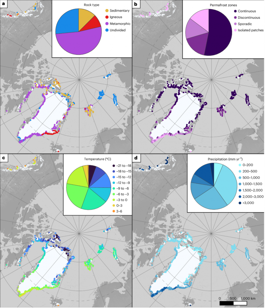 Geological and climatic summaries of newly emerged coastlines.© Kavan J., et al., 2025The time required for the ground to refreeze is estimated at a minimum of two years. This creates a critical period during which unconsolidated materials—sand, gravel, silt—are particularly susceptible to erosion. This fragility is accentuated in areas composed of sedimentary rocks, which are softer and more friable than metamorphic or igneous (volcanic) rocks. In Svalbard and eastern Greenland, for example, where sedimentary outcrops dominate, coastal erosion processes are therefore likely to be particularly rapid and difficult to anticipate.