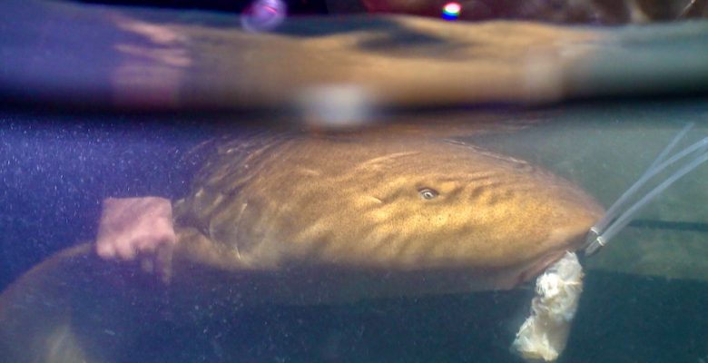 Photo de couverture : Des scientifiques du programme de recherche et de conservation des requins de l’université de Miami se préparent à prélever des échantillons sur un requin nourrice pêché au large de Miami pendant la nuit. @sharktagging.com